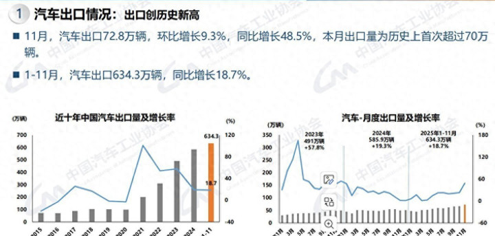 当我们谈论中国汽车出海时,早已不是“把车运出去”那么简单。上个月,中汽协的一组数据刷爆行业圈——11月中国汽车单月出口量首次冲破70万辆大关,达到72.8万辆,同比增长近五成。这个数字的意义,远不止“销量创新高”,而是中国汽车产业从“产品输出”转向“生态扎根”的里程碑时刻。